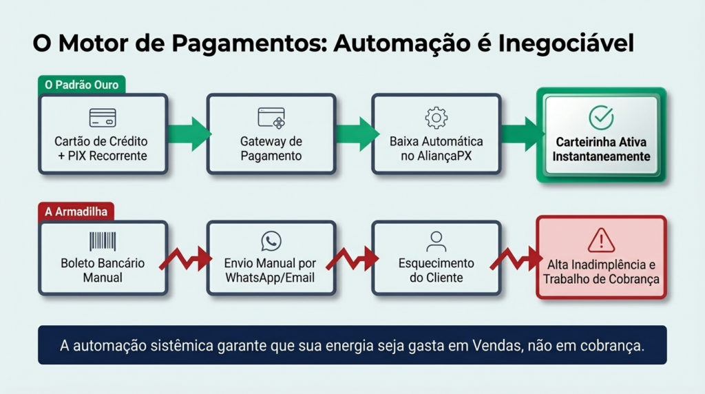 Cobrar manualmente → inviável escalar