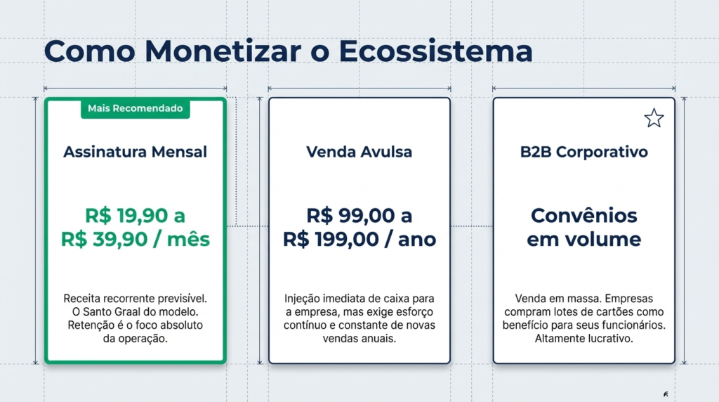 - B2B (empresas compram para funcionários)